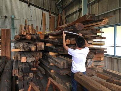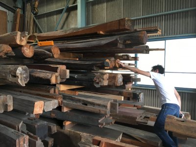 今回は 新しい店舗に使う古材の選定に 東京からはるばるお越しいただきました