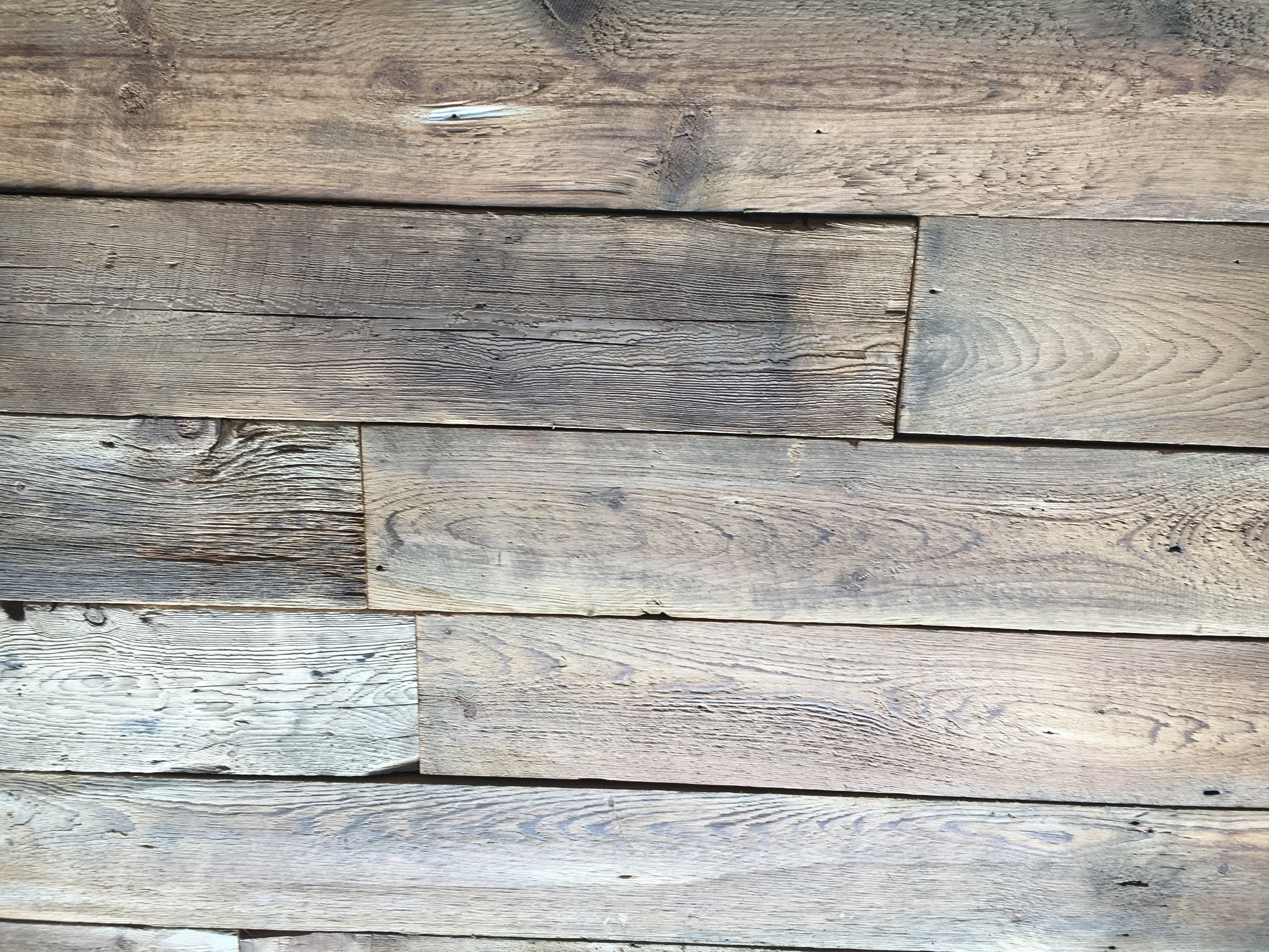 納屋や倉庫の内部から採取された古材は、ノコ目跡や当時の風合いが100年以上経過した今でもそのまま保たれており、当時のどこか懐かしい温かみのある素材感がとても人気の板材です。貼りあがった時の存在感は抜群です。古材好きが最後に必ず行きつく商品としても知られています。