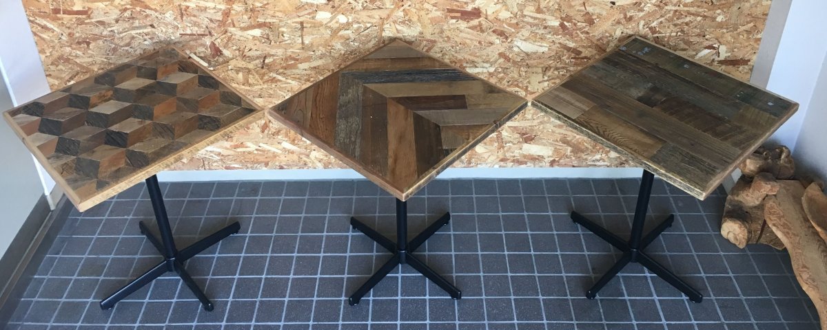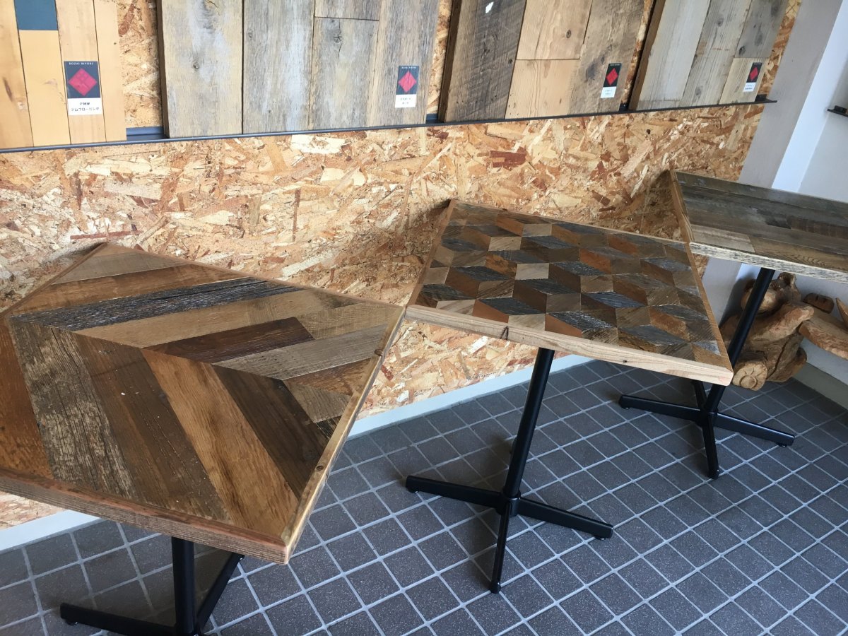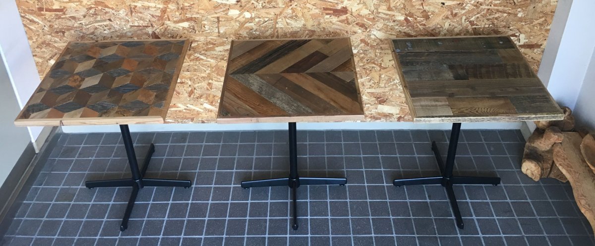 今人気急上昇中の カフェテーブル用古材天板が うちの店にも入荷してきました