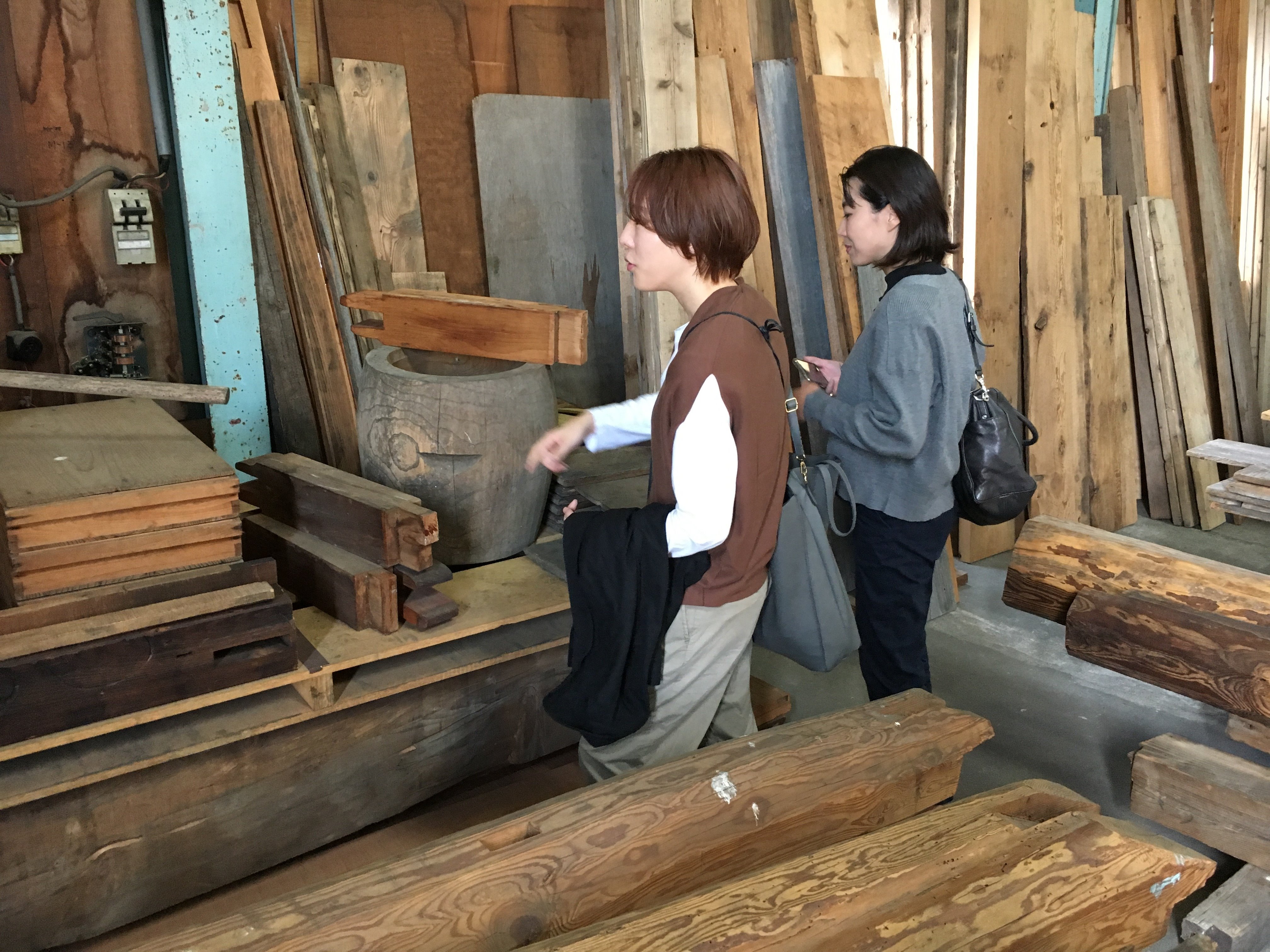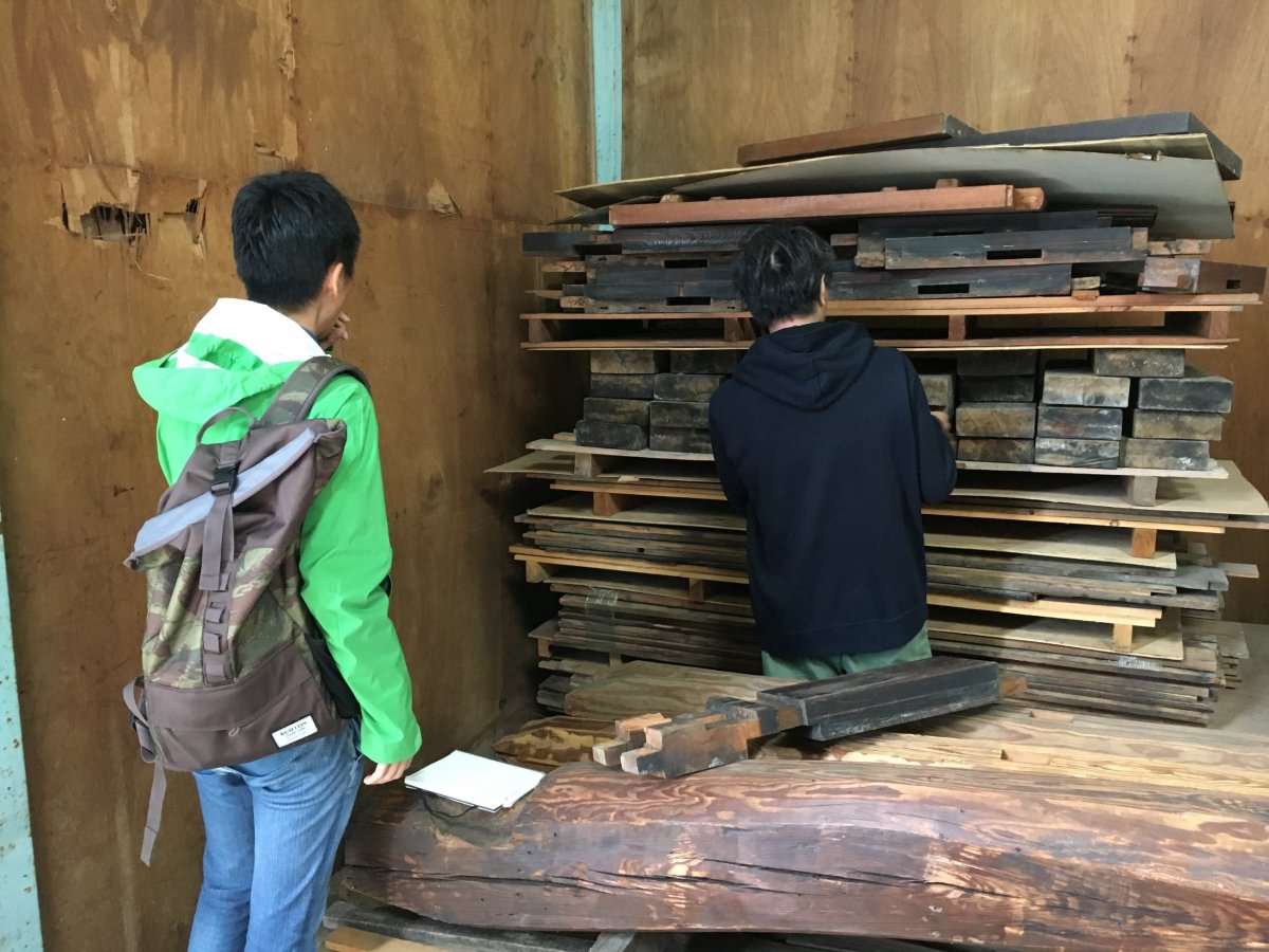 倉庫の端に眠っていた小物の古材や 古材ではなくうちの倉庫の売れ残りの木材なんかもじっくりと見ていかれました