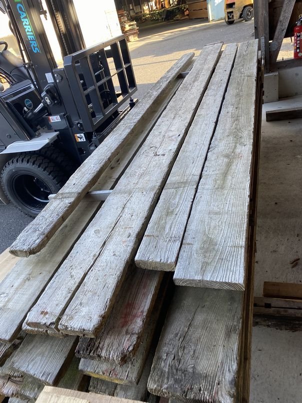 古材日和で通常販売しているユーズドプレーンは古材の足場板の中でもしっかりと整備された上品な感じの商品となりますが、今回入荷した足場板は かなり使い込まており いわゆるジャンク系というものです