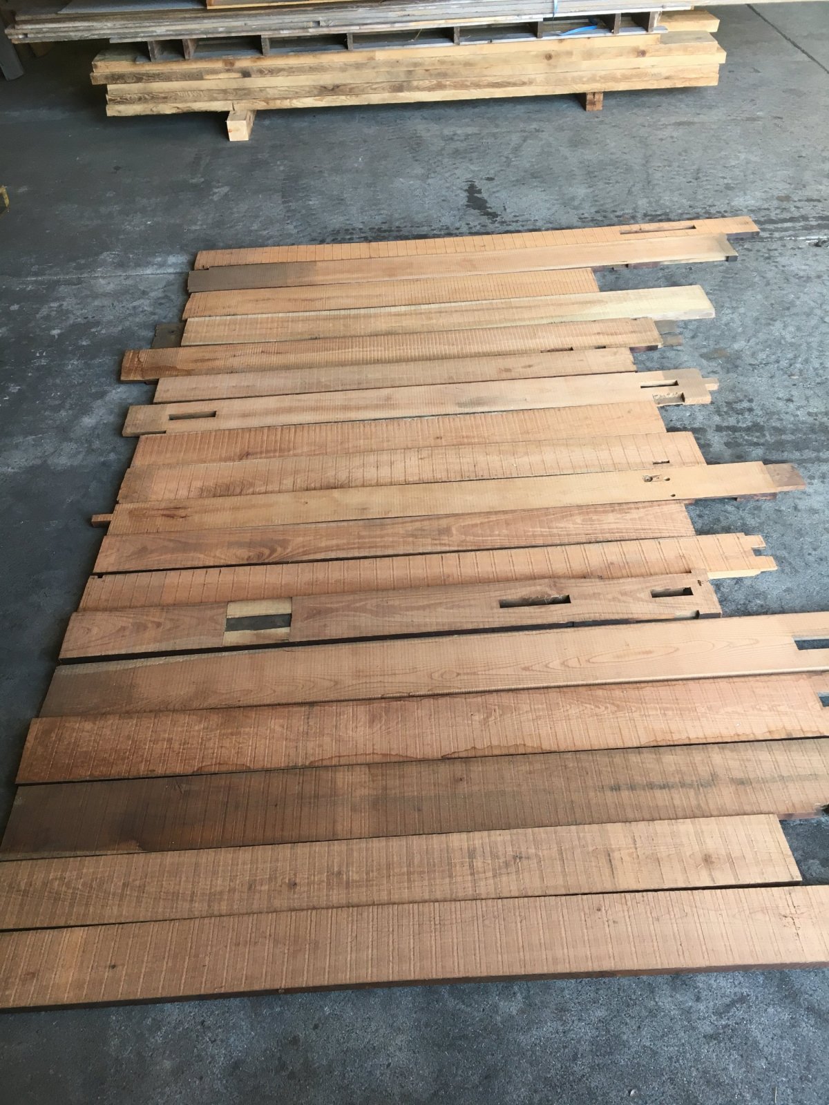 実は この板は もともと古材面は 他の現場に使ってしまった残りを板状にスライスしたものです
