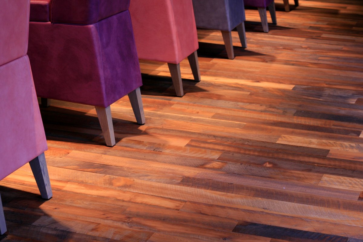 アメリカ北東部の古い建物や工場で使用されていた多種な広葉樹を加工しフローリング材に仕上げました。
