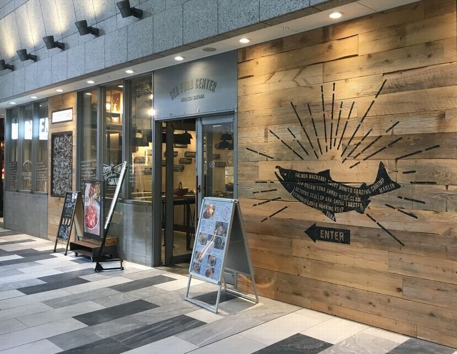 魚のマークが印象的なメリケンサカナ名駅店は 豊田シンフォニービルの地下1Fにあり 名古屋駅から地下を歩いていけます