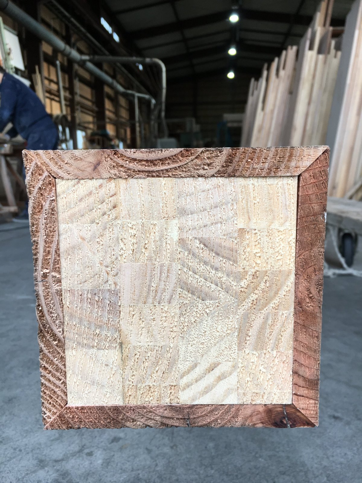 そんな時に ユーズドプレーンの板を4面張って 柱を作りました