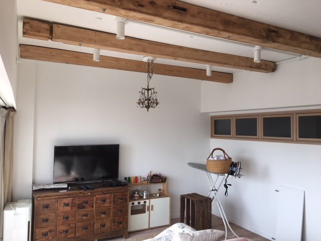天井の梁をつけたり 床や壁の一部だけとか 棚板やカウンター等々
