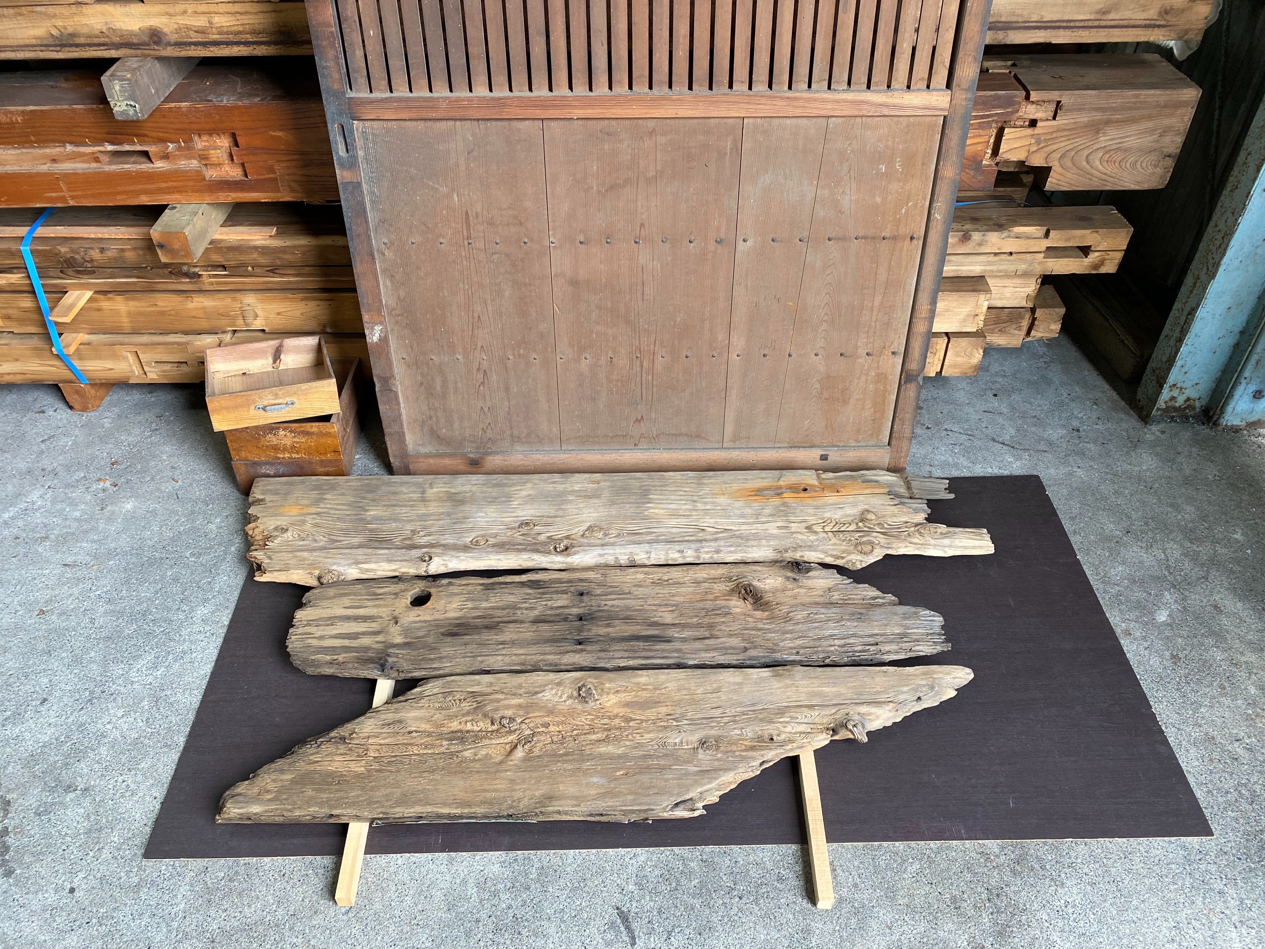 今回の舟板は、びわ湖の田舟の一部で、あまり大きいことはないですが、お店の看板や花台なんかにいかがでしょうか?