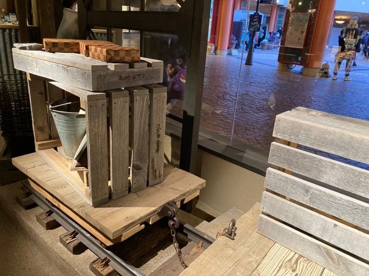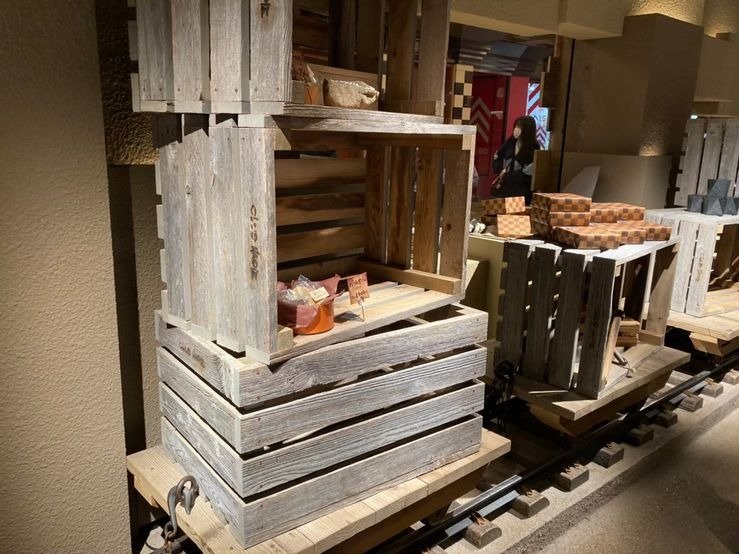 いつも ワクワクを提供してくれる たねやグループのクラブハリエ様ですが、今回ご紹介するお店は舞浜イクスピアリ店です。『今にも採掘がはじまりそうな空間で宝物を探すように、お菓子選びを楽しんでいただきたい』という願いをこめて作られています。ショーウインドウの外から店内を覗き込んだだけで、もうお店の中に入らずにはいられません。イクスピアリに遊びに行ったときには、ぜひ覗いてみてください。古材日和の古材も待っています。
