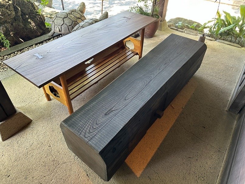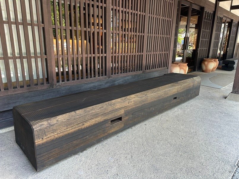 いつもお世話になっている「たねや」さんの 日牟禮乃舍のベンチに ケヤキの古材を採用いただきましたので、レポートさせていただきます。