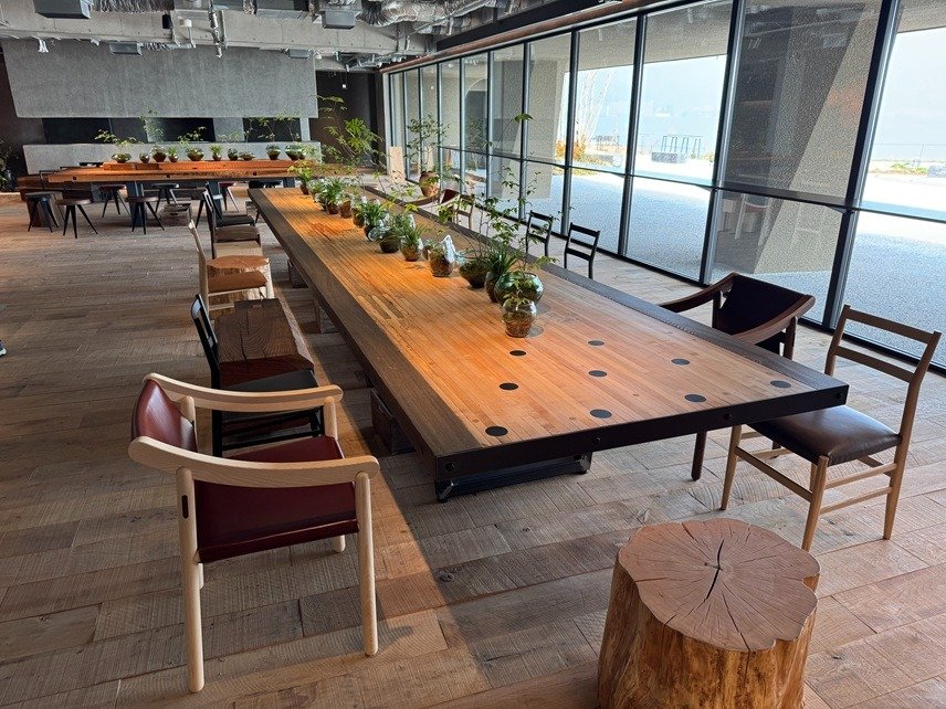 カフェスペースの案内より、並んでいたお買い物の列のほうが早く入店できたため、幸運にも人がいない状態でテーブルを撮影できました。