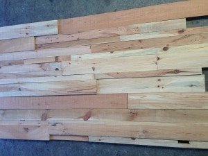 ということで、この芯材の部分だけで、古材ウォール調に並べてみました。