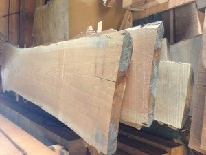 テーブルの天板やカウンターに使う用途が多いのですが、サイズなんかをいろいろ確認していくとなかなか思うような寸法がなくて、幅接ぎなんかでご提案させていただくことも多いのですが、結局、新材の耳付きの板なんかに落ち着くことも多いです。