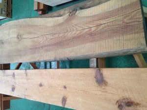 お客様より、パイン系のカウンターがほしいとの要望で、松の丸太を製材したものとUSボードの2インチを出してきました