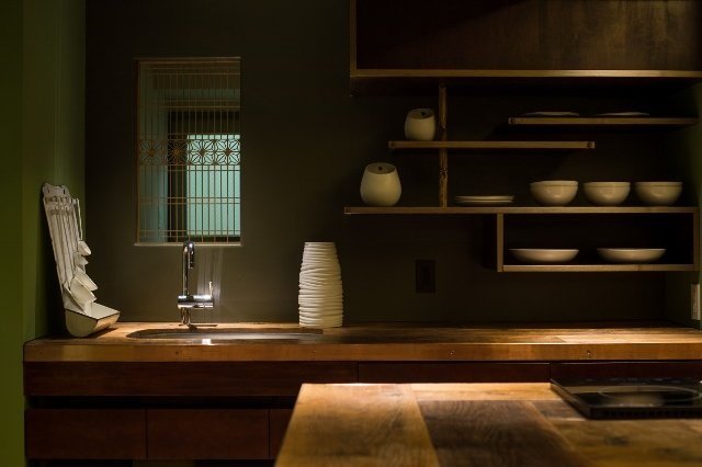 朝から夕暮れまで、光の移ろいとともに刻々と変化する古材の表情は、まるで生きているかのよう。一世紀もの時を経た古材と職人の技、そして現代のデザイン感性が見事に調和した空間演出が実現します。