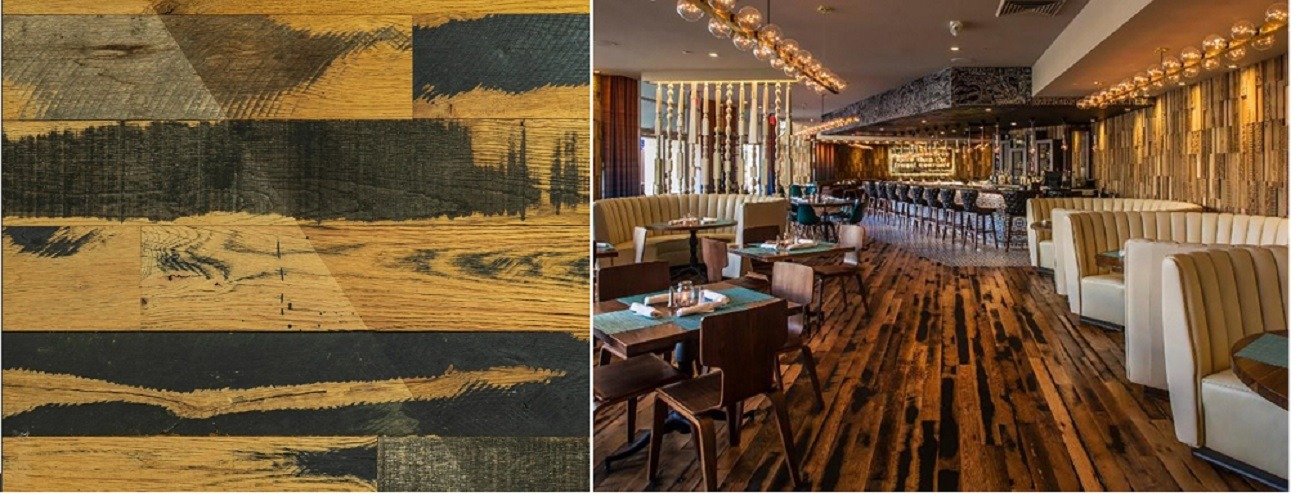 カフェやレストランの内装、リビングのフローリングやアクセントウォールなど、様々な空間で美しさを楽しめます。