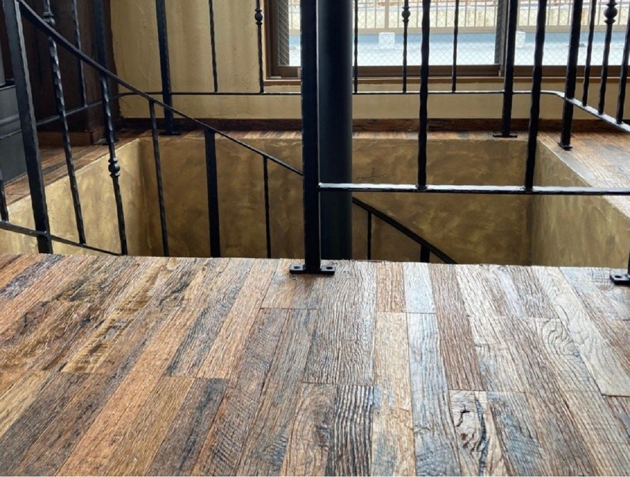 古材フローリングは歴史を感じる独特の風合いで、空間に特別な魅力をもたらします。
