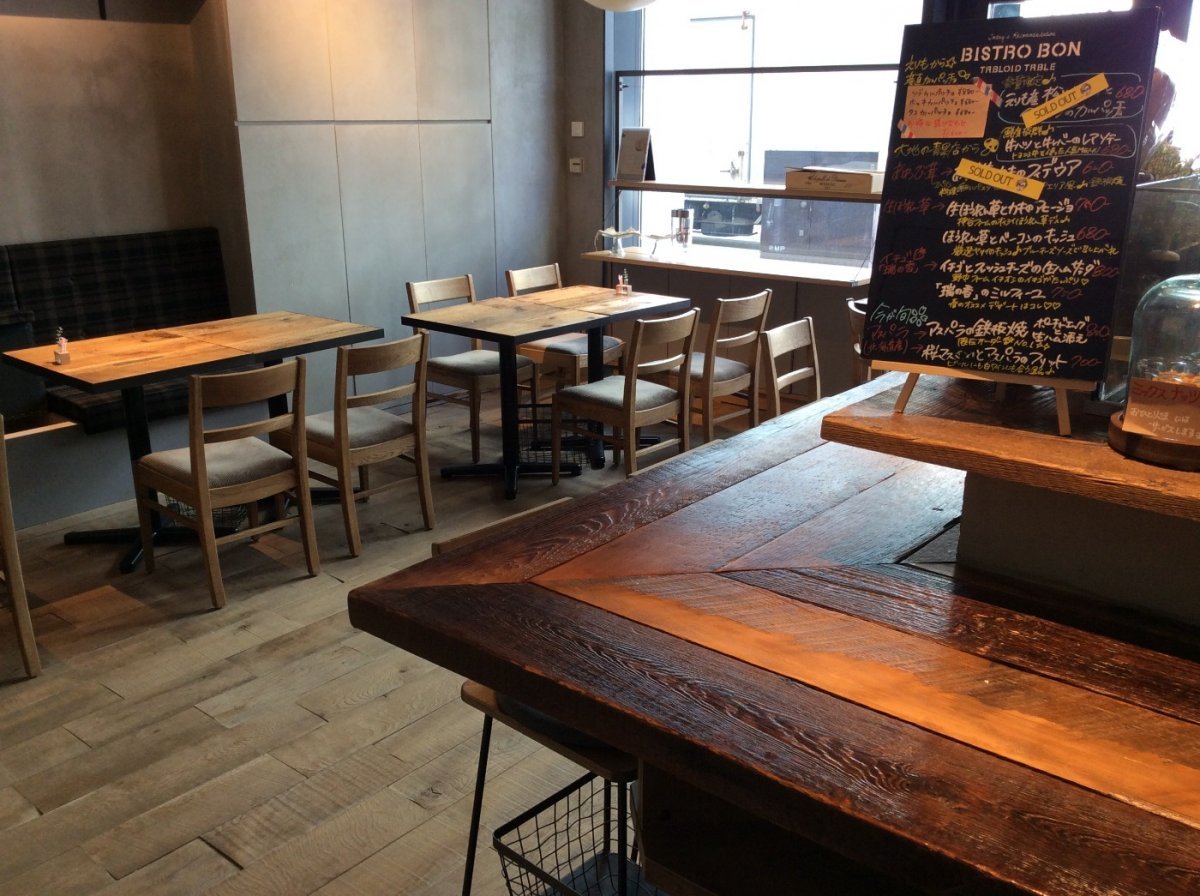 JR札幌駅からすぐ近くの「Bistro BON tabloid table」様で古材ダイニングテーブルを導入いただいた事例です。