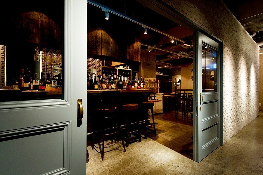 北海道札幌市でまかないフレンチやビストロ、ワインなどを楽しめる「French Panda」様の店内で古材ダイニングテーブルをご利用いただいた事例です。