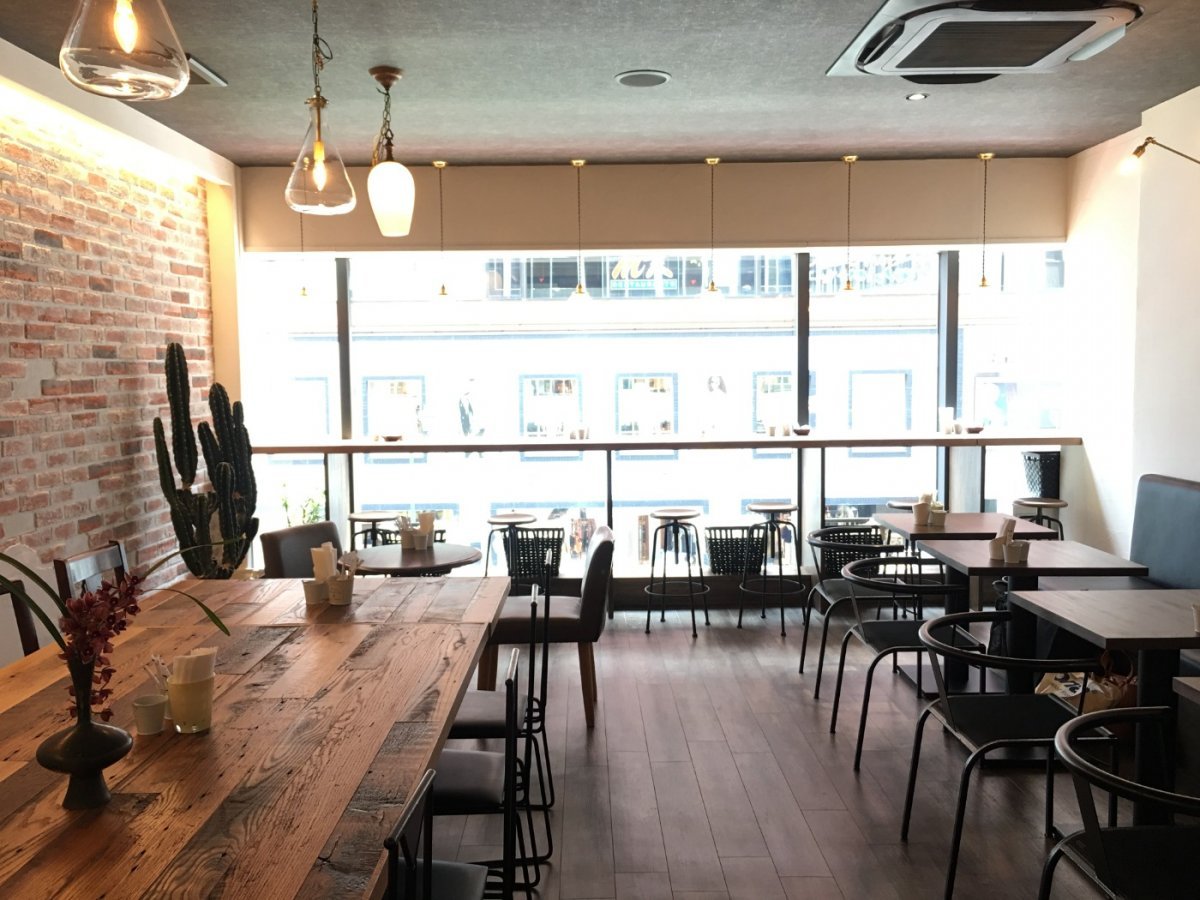 明治通り沿いながら、忙しい時間を忘れさせてくれるような優しい雰囲気が漂うカフェで、ホッと一息つける空間作りにダイニングテーブルが役立っています。