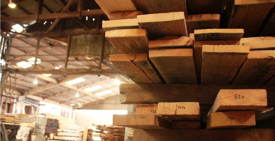 1.古材を必要な寸法に合わせて計測し、マークします。