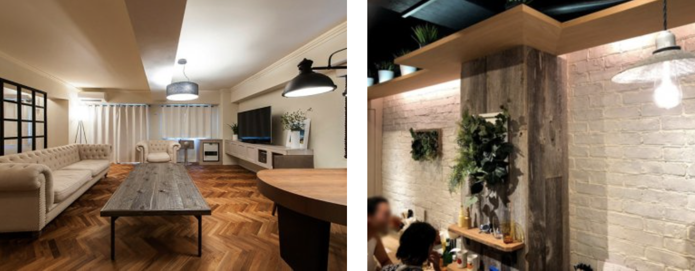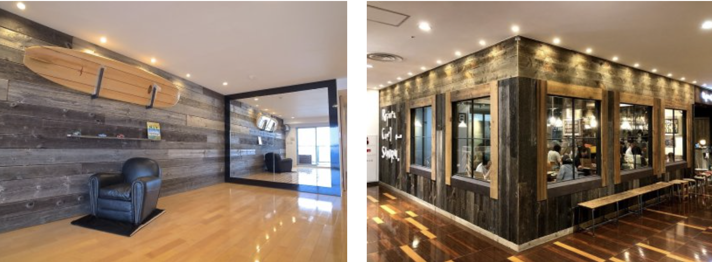 仙台では特に市街地の飲食店様からご依頼いただくことが多く、食事やお酒を楽しめる空間作りに古材日和の古材をお選びいただいております。