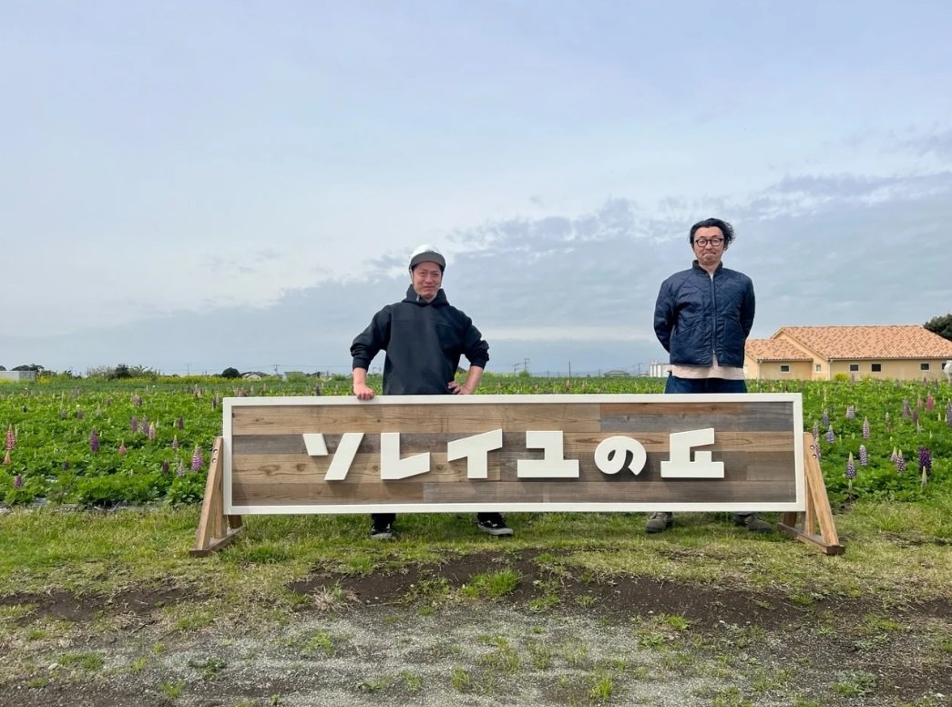 そんなソレイユの丘の入口に、古材日和の古材を使った大型看板が設置されました。