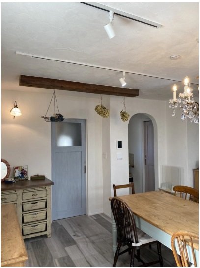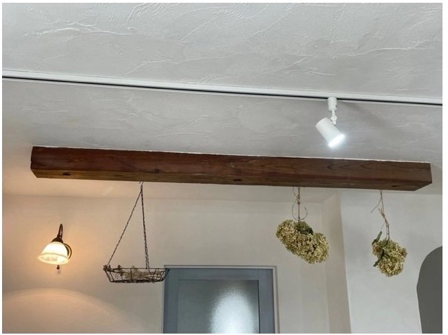 神奈川県横浜市にあるクラフト教室「アトリエ花歩」では、古材日和の「角材」が天井のアクセントとして使用されました。