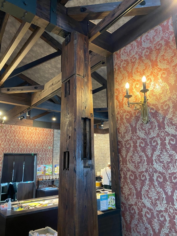 存在感のある古材柱は、一本設置するだけでもその場の雰囲気をガラッと変える力を持つのも魅力です。