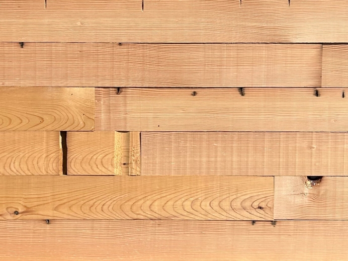 駅舎の古材をスライスして製作した板材です。美しい木目の中に釘穴の跡などが残っており味わい深い商品です。