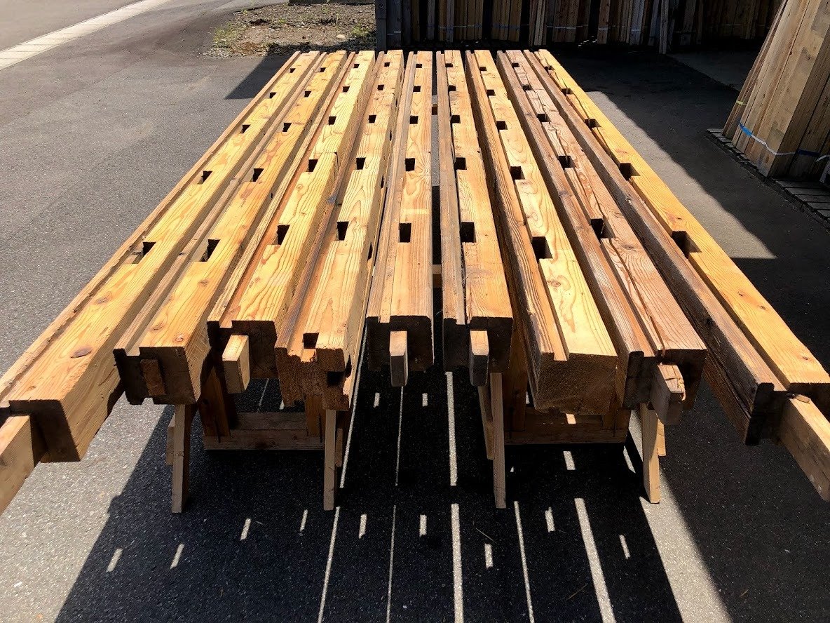 柱材は細身で使いやすい上、ホゾ穴などの古材らしさも十分感じ取れる人気商品です。古民家を支える重要な部材ゆえ梁材とガッチリ組まれており採取が難しい素材ですが、皆様へ安定して供給するため日々コツコツと収集に励んでおります。上質な柱材を是非ご活用ください。