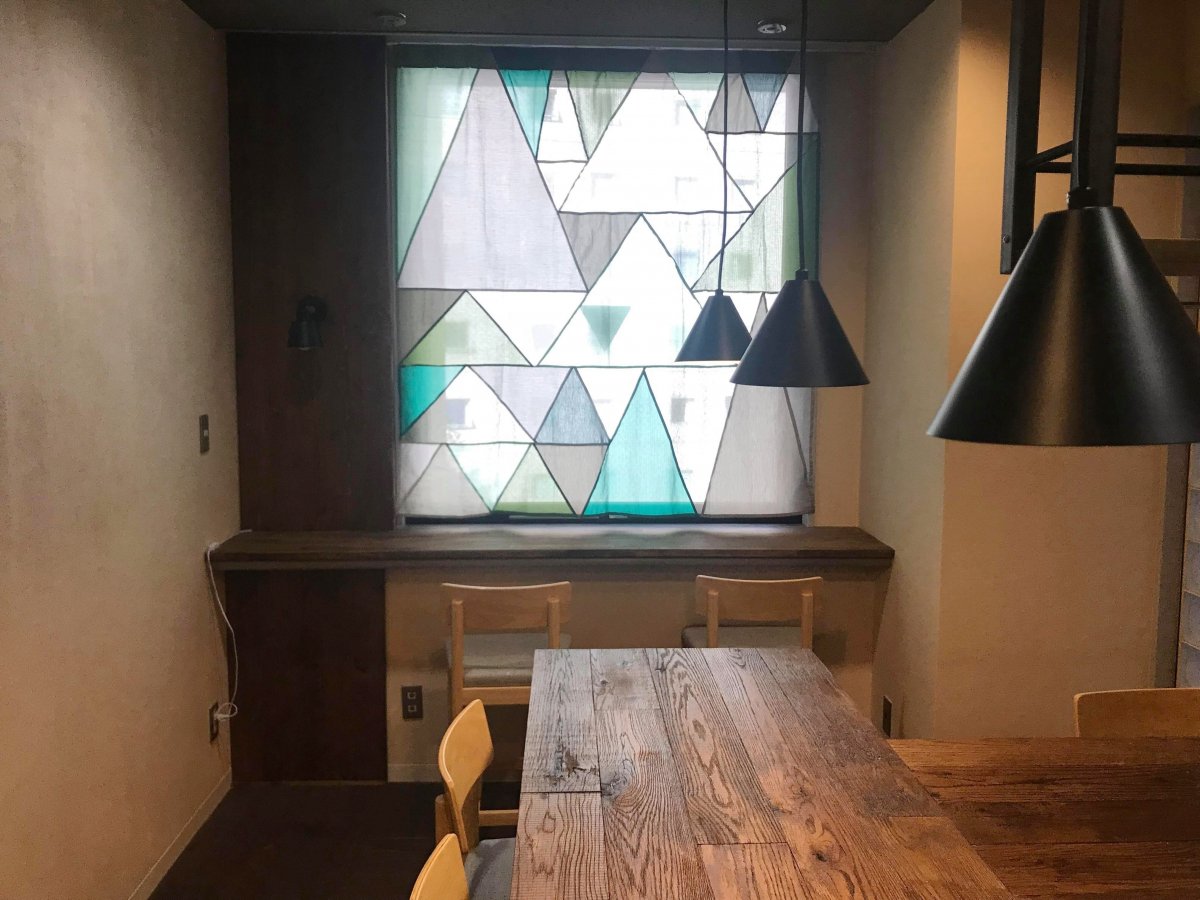 古材を使ったカウンターやペンダントライトで、カジュアルなバーの様な空間を目指しました。広いスペースではないですが、「給湯室」も空間に手を加えれば、「こじんまりと集まる場所」に変えることができます。
