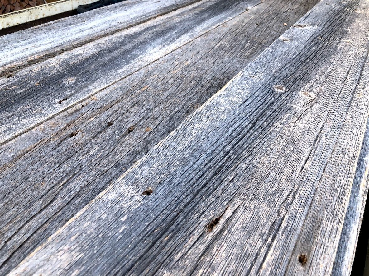 アメリカの大自然でゆっくりと時間をかけて風化し、スノーフェンスとしての役目を終えたグレーボード。両面古材面(オリジナル)と片面古材面(ハーフ)の2タイプがあります。