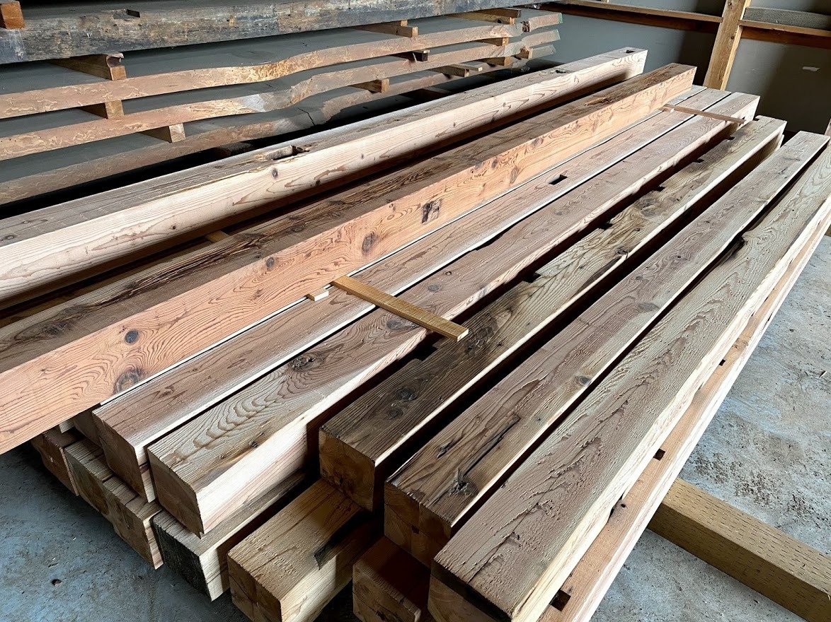 製材された古材は独自の加工を施し必要なテイストまで仕上げます。