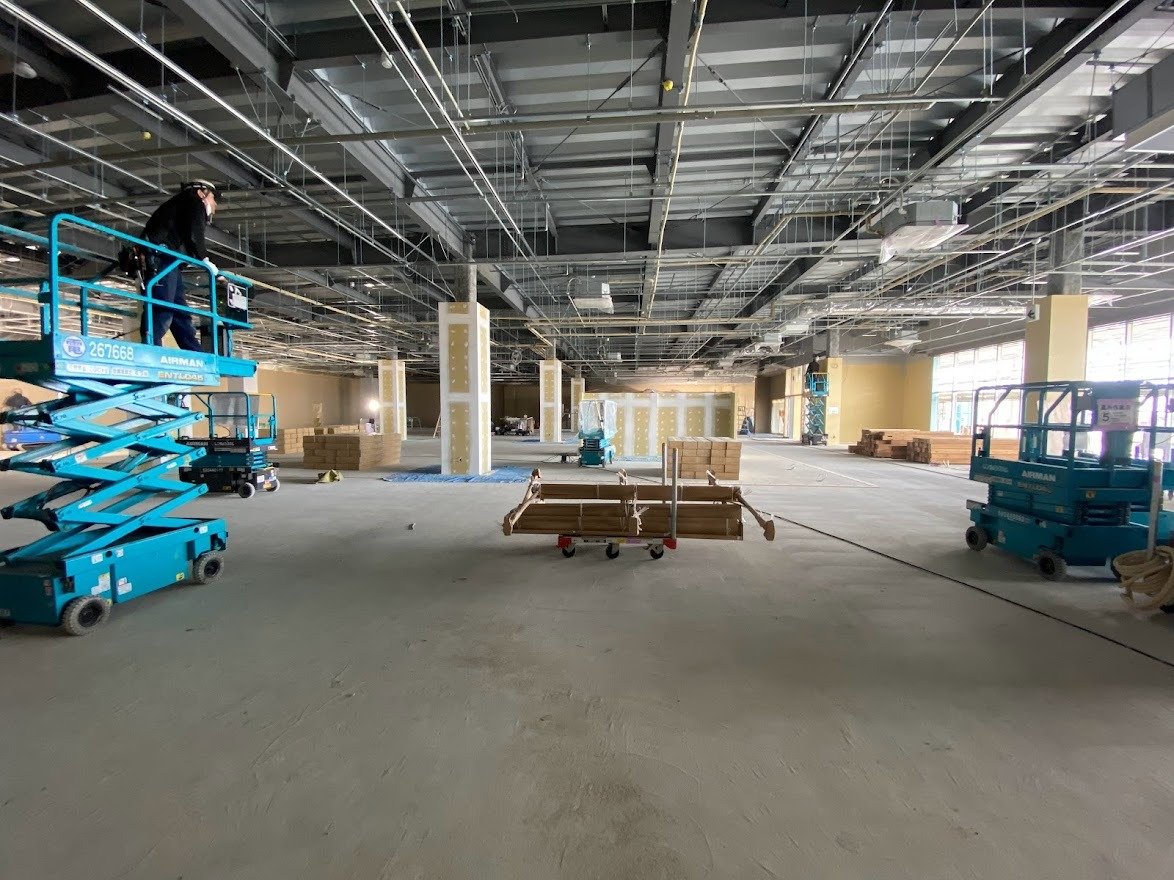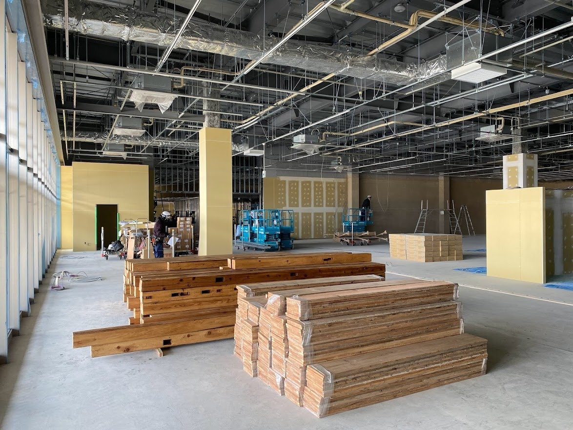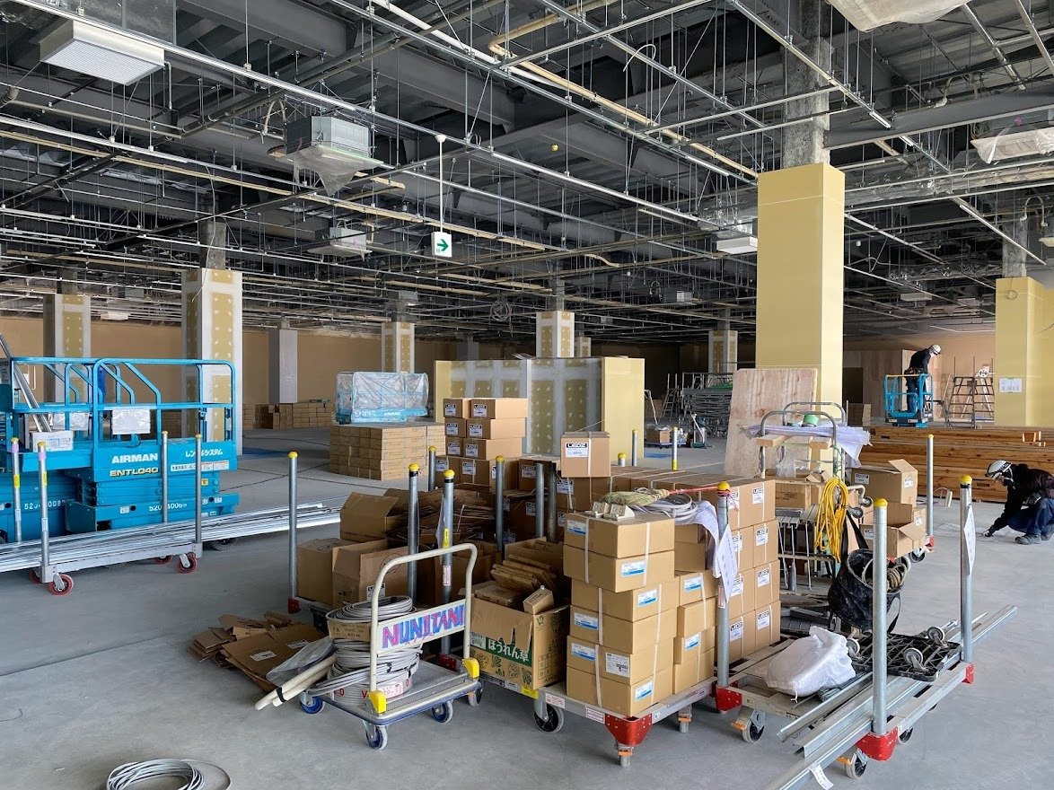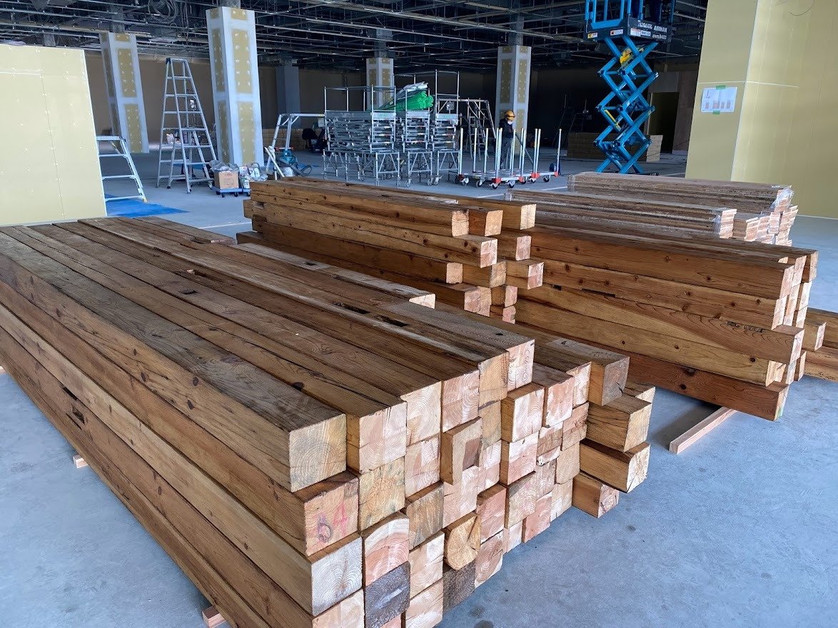現在、建設工事中のショッピングモールへ古材商品を搬入してきました。