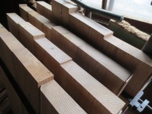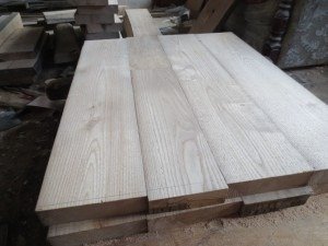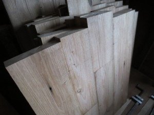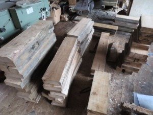 現在、ご注文いただいている栗古材カウンター&テーブル製作作業中!