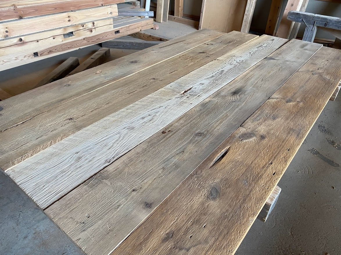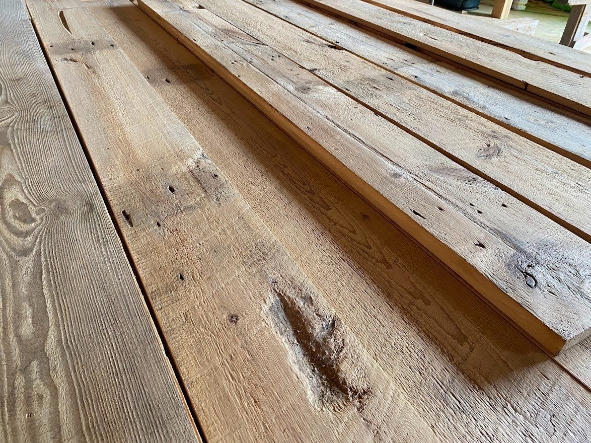 反りを取るために少し削っても、古材面が残りまたカッコいい仕上がりになります。