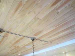 天井の羽目板が、秋田杉無垢パネリングの無節材になってます。
