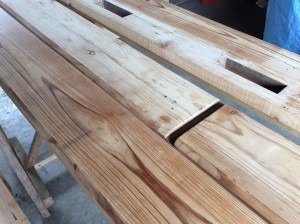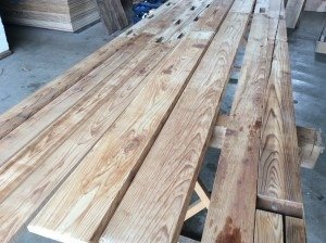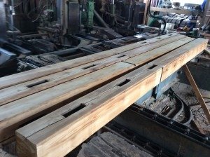 今回は古材面のみを使用するため製材にて角材の4面を切り落としました。