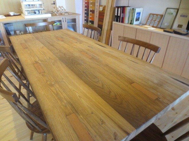 ▲古材クリ(製材)幅ハギ合わせテーブル[1200×4000]