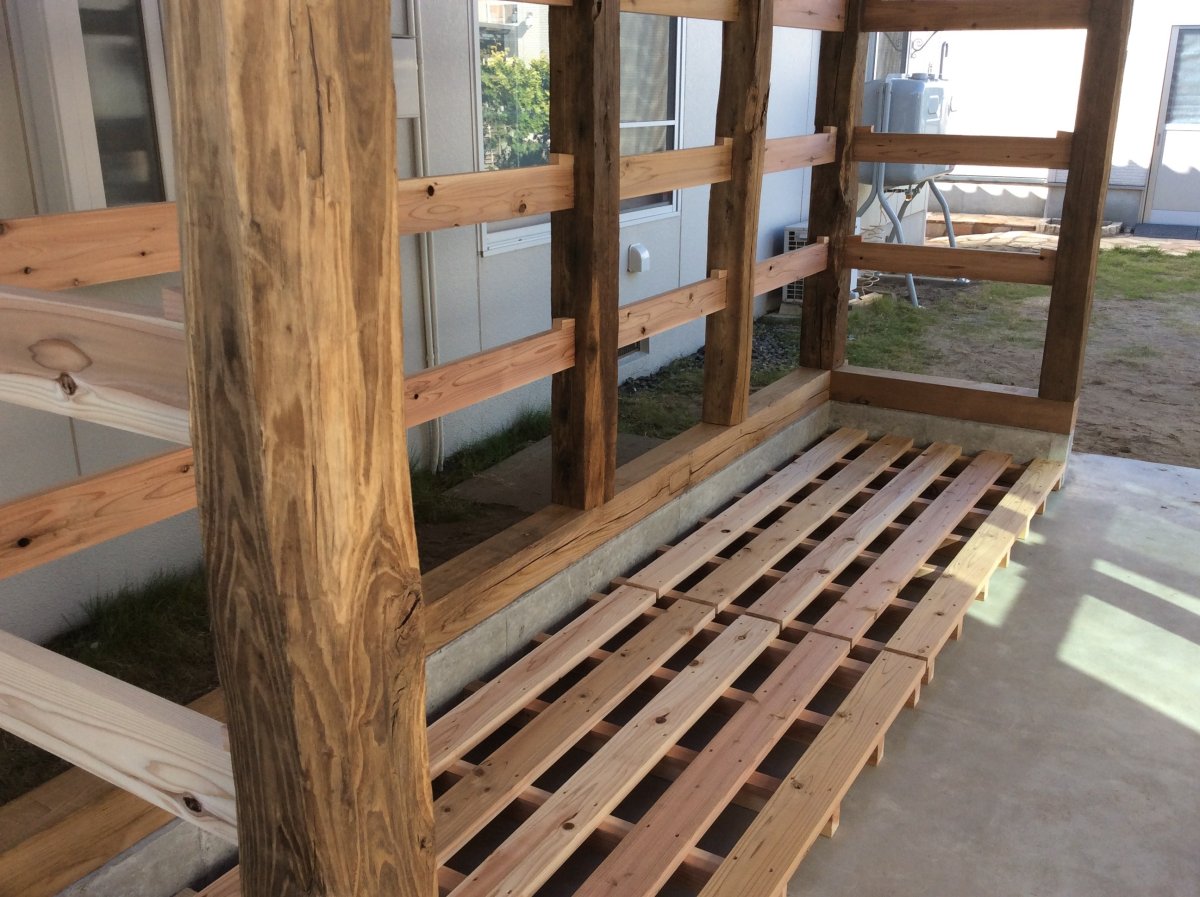 柱・梁・土台には栗の古材を使用し耐久性を考慮しつつ面白さも重視しました。