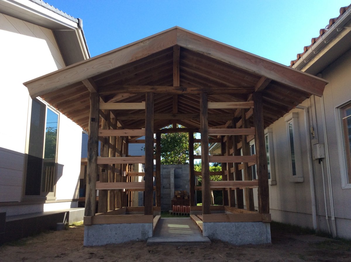 古材以外の杉材や破風板の欅が経年変化し色あせてくるころが本当の完成品!