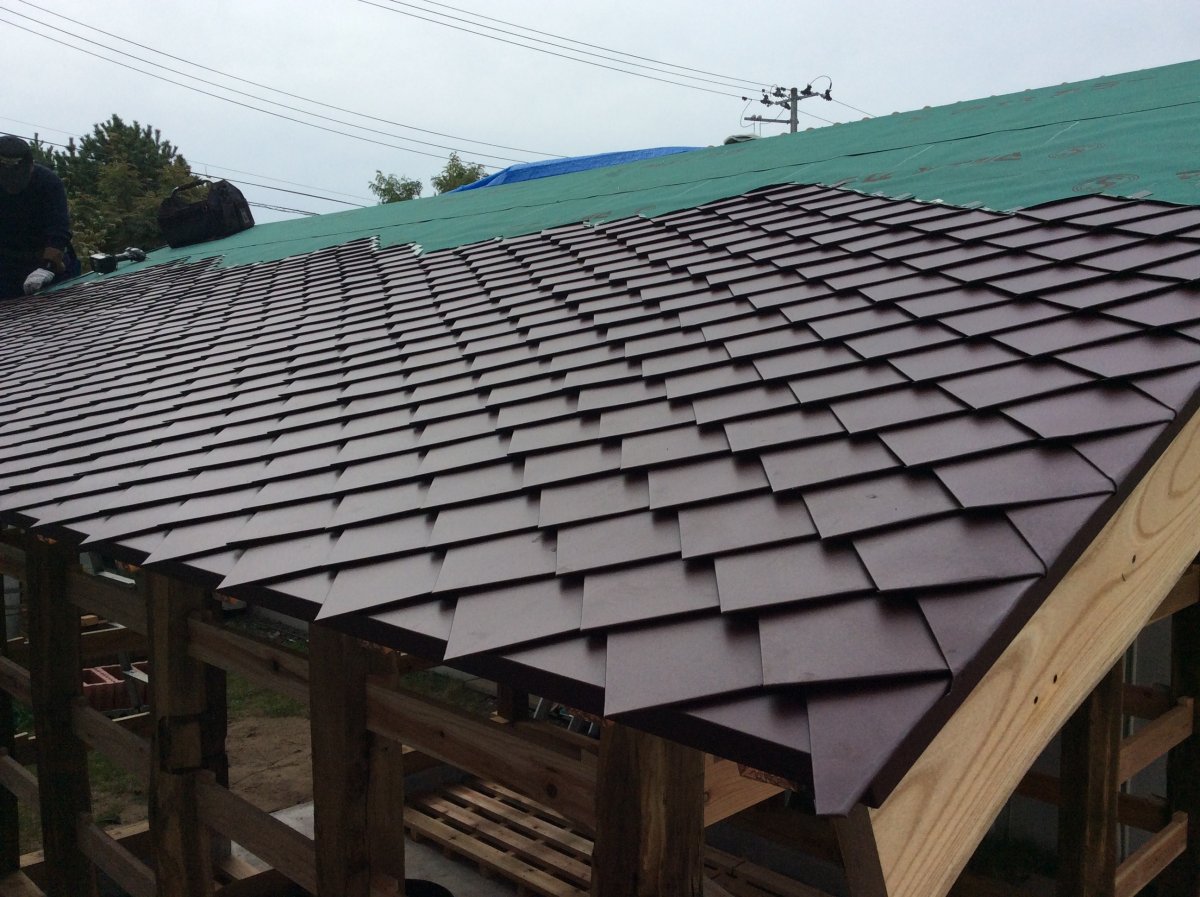 屋根仕上げはガルバリウム鋼板の菱葺きに。これがまた結構大変で・・・