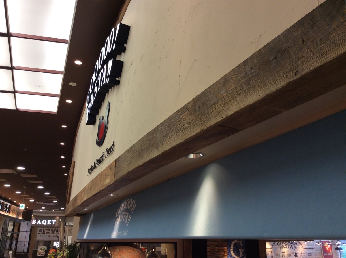 こちらは看板サイン飾りと店内の壁面飾りに北米産の最強古材「USボード(バーンウッド) ブラウンタイプ」をご採用いただきました。