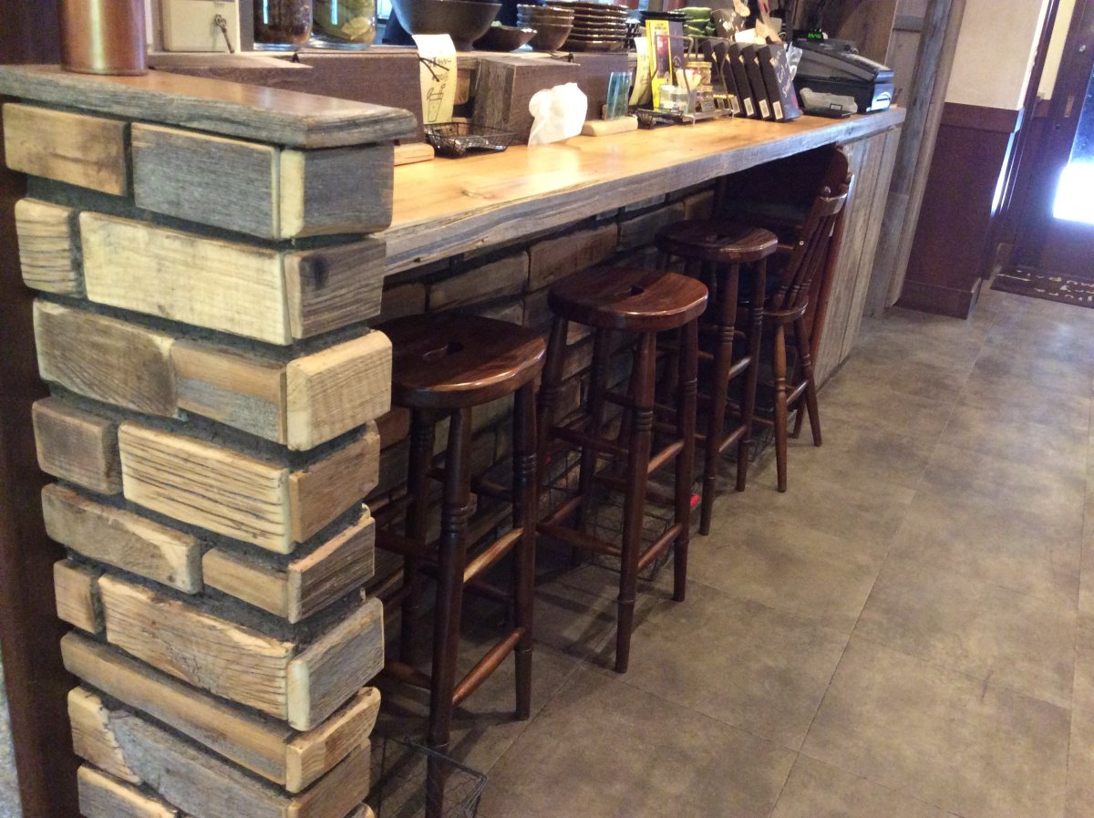 古材の持つ自然な色合いが調和して落ち着いた空間に仕上がっておりますね。