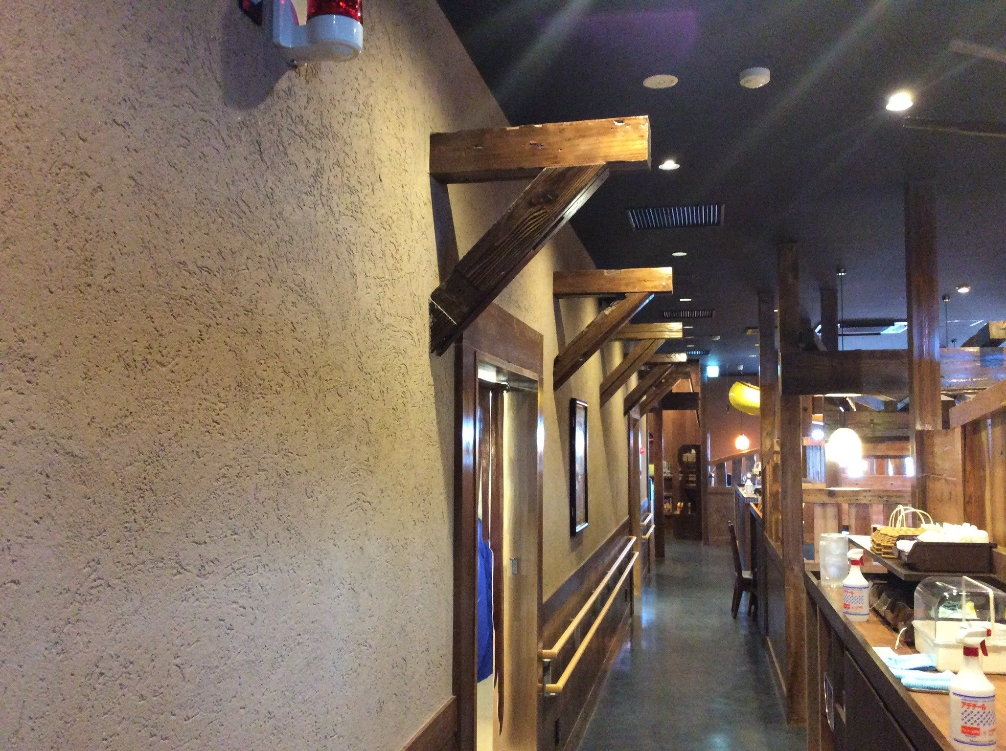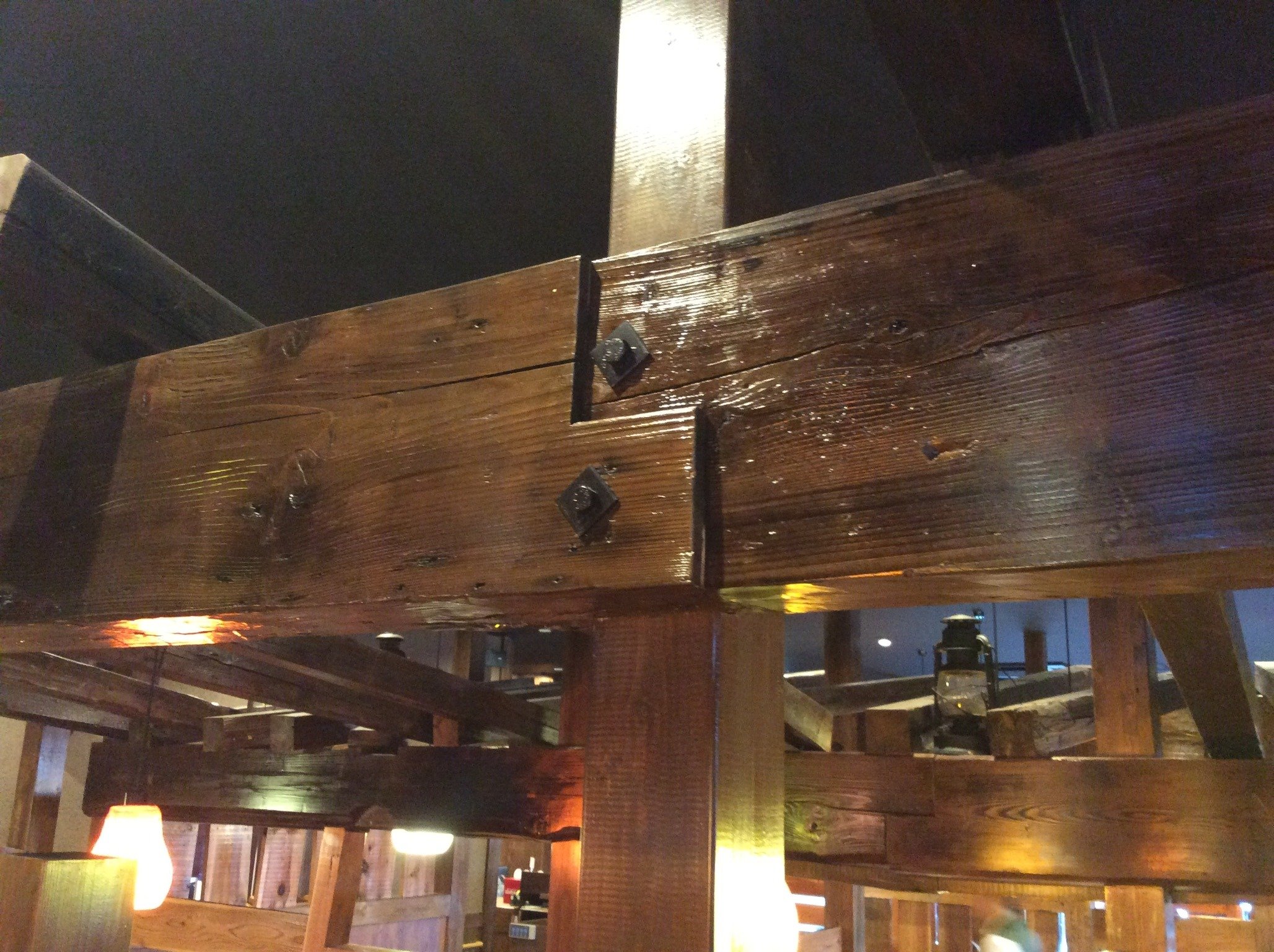 今回こちらの店内いたることろに古材の角材と板材をご利用いただきました。