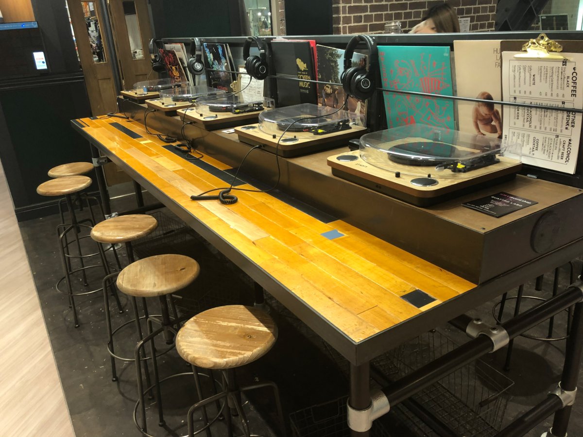 なんとアナログ盤のプレーヤーがずらり!