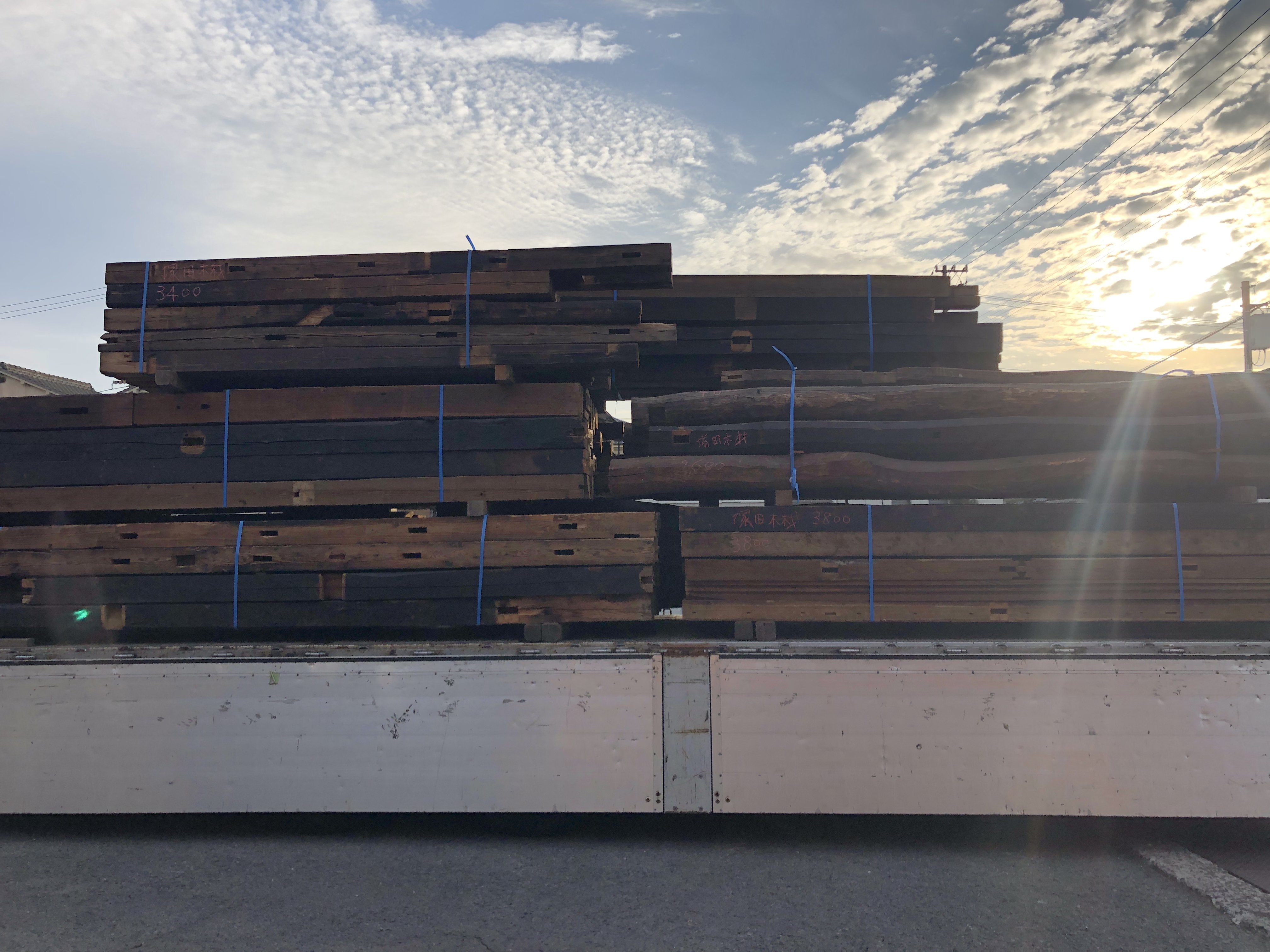 朝7時、朝日に照らされた美しい古材が1000kmの道のりを経て到着しました!