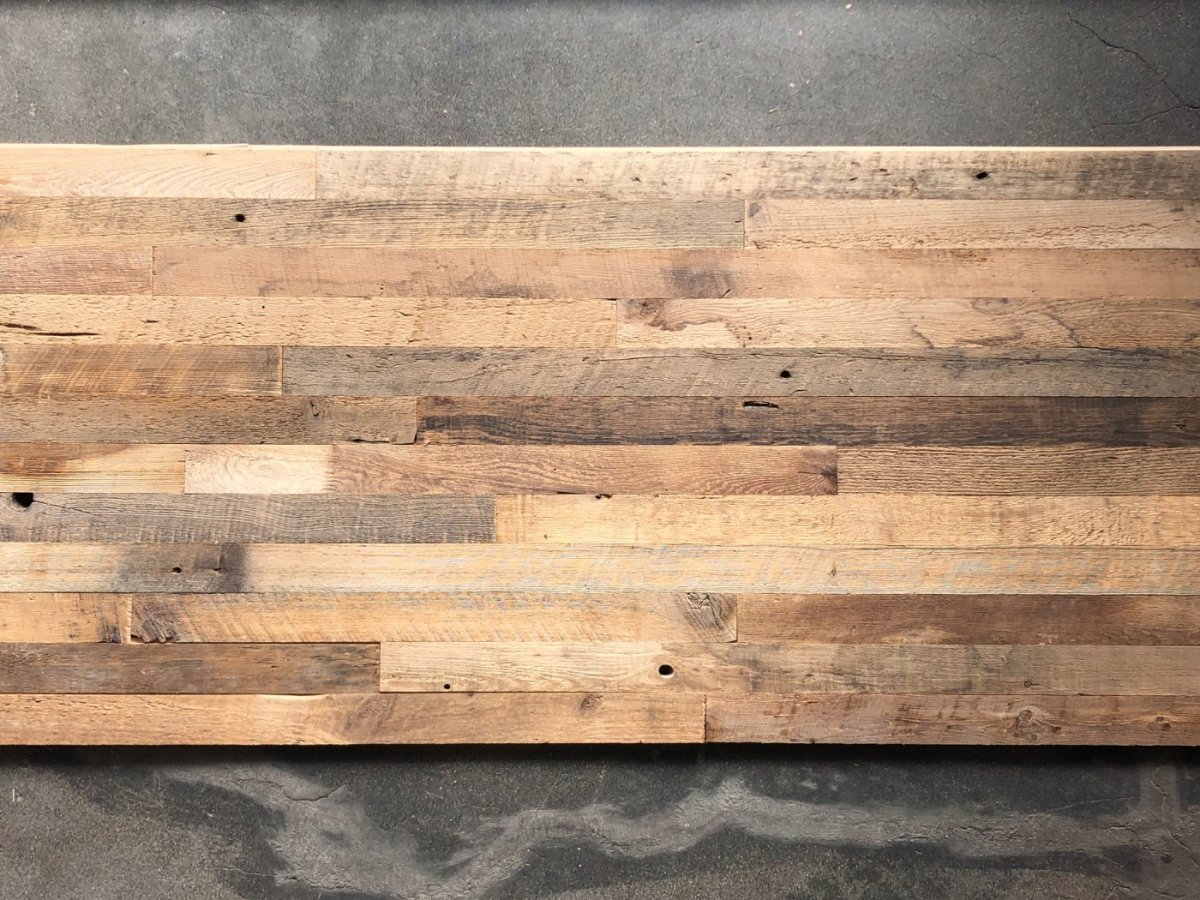 納屋や倉庫の内部から採取された古材は、ノコ目跡や当時の風合いが100年以上経過した今でもそのまま保たれており、当時のどこか懐かしい温かみのある素材感がとても人気の板材です。貼りあがった時の存在感は抜群です。古材好きが最後に必ず行きつく商品としても知られています。