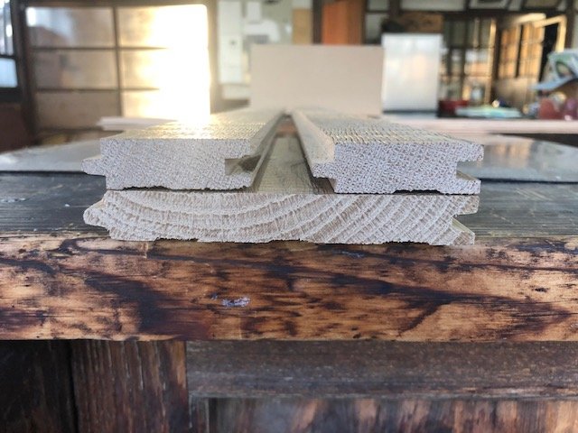 うーん、この本実(凹凸部分)を落として、半分に割って、また本実加工したら、、、