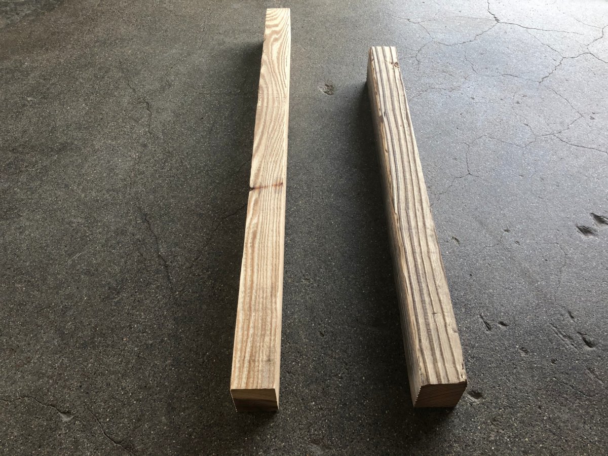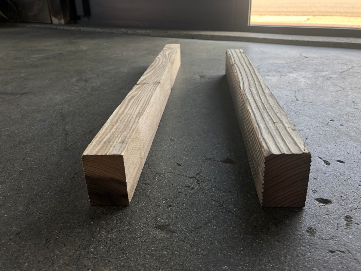 ユーズドプレーン(古材足場板)200 x 35 をカットして、35 x 45 にしたものです。